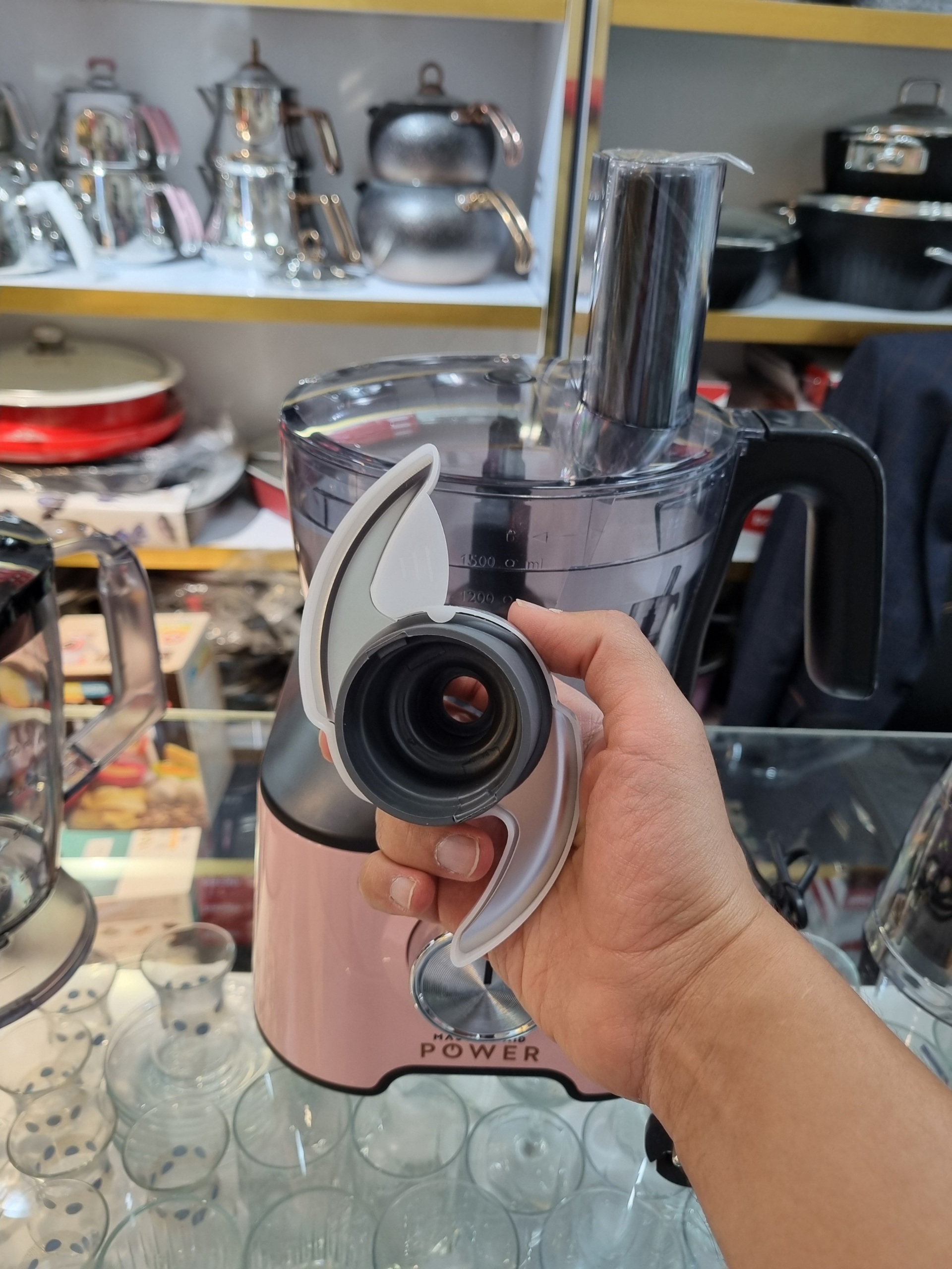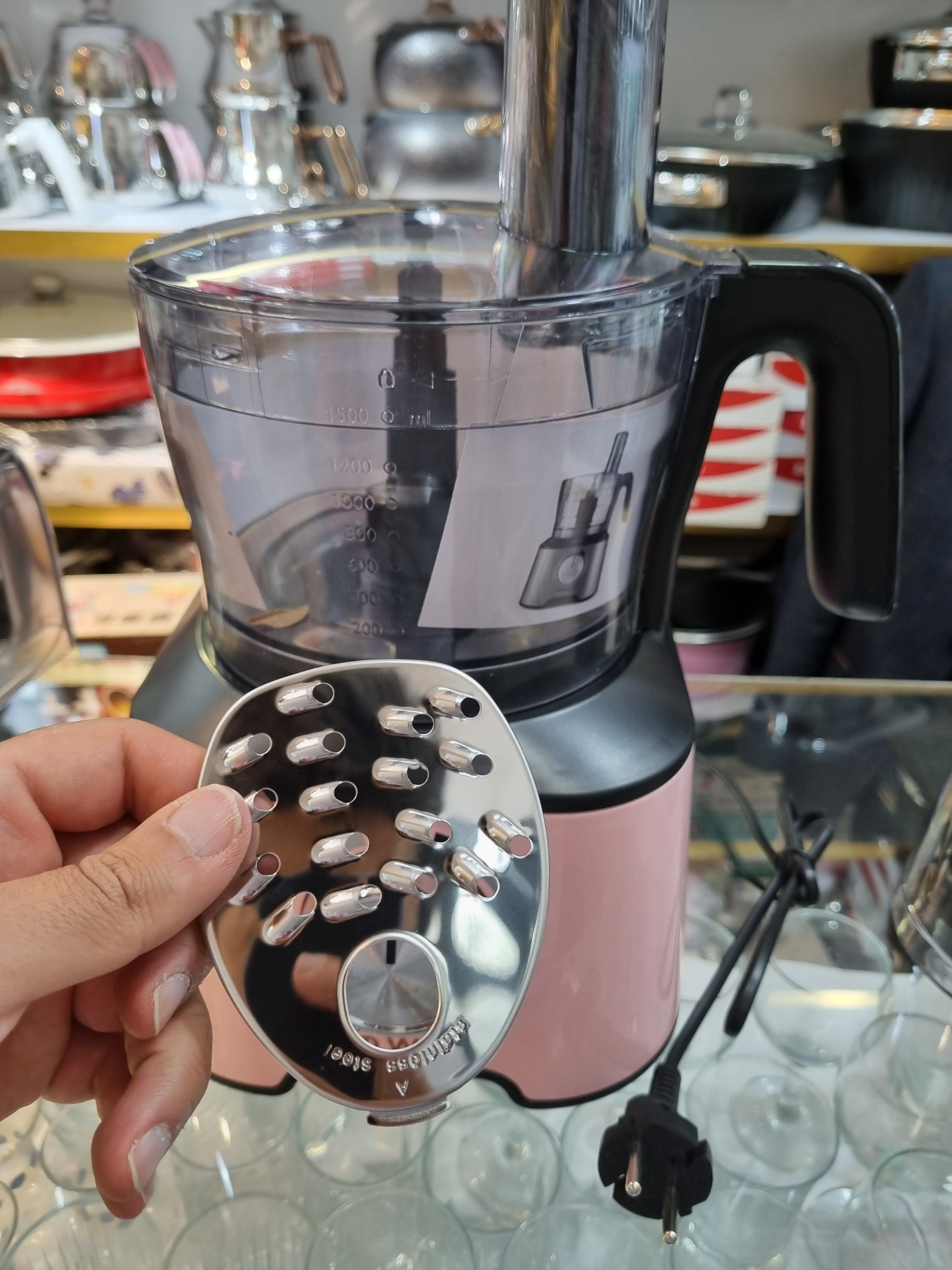 ۵ عدد سری رنده مختلف از فولاد ضد زنگ،برای میوه ها، سبزیجات و پنیر تیغه های ۴ عددی هلی کوپتری دو طبقه-پایه ضد لغزش-قطعات قابل جدا شدن-دارای ۳ عدد ظرف جداگانه:مخزن خرد کن - مخزن مخلوط کن یا اسموتی ساز و مخرن آسیاب)-عملکرد توربو-تنظیم سرعت دو مرحله ای-طراحی بدنه ارگونومیک